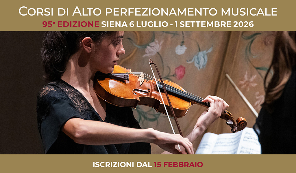 Programma di sala Programma di sala MICAT IN VERTICE 2025-26 PROSSIMI EVENTI 6 FEBBRAIO ore 21.00 Teatro dei Rozzi IAN BOSTRIDGE tenore ROBERTO PROSSEDA pianoforte Musica di Robert Schumann, Benjamin Britten 13 FEBBRAIO ore 21.00 Teatro dei Rozzi NEVERMIND ANNA BESSON flauto LOUIS CREAC’H violino ROBIN PHARO viola da gamba / violoncello JEAN RONDEAU clavicembalo, organo positivo Musica di Johann Sebastian Bach 20 FEBBRAIO ore 21.00 Teatro dei Rozzi I MADRIGALISTI DELLA STAGIONE ARMONICA PAOLO FALDI flauto PIETRO PROSSER liuto LUCA DORDOLO direzione musicale Musica di Francesco Bianciardi in ricordo di Sergio Balestracci (1944 – 2024) ABBONAMENTI E BIGLIETTI CHIGIANA NEWS By Marta Sabatini 4 Febbraio 2026 Francesco Piemontesi a Siena il 15 aprile: l’atteso recital per la “Micat in Vertice” trova una nuova data Comunicati stampa By Marta Sabatini 3 Febbraio 2026 Ian Bostridge e Roberto Prosseda: incontro al vertice alla Chigiana Comunicati stampa By Marta Sabatini 2 Febbraio 2026 Il cordoglio dell’Accademia Chigiana per la scomparsa di Angelo Foletto Comunicati stampa By Marta Sabatini 28 Gennaio 2026 Micat in Vertice: rinviato il concerto di Francesco Piemontesi Comunicati stampa Read more SCOPRI L’ACCADEMIA CORSI PALAZZO CHIGI SARACINI SOSTIENI